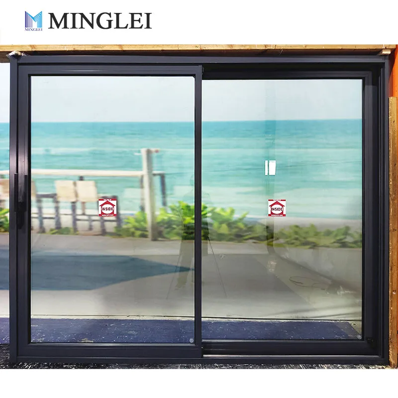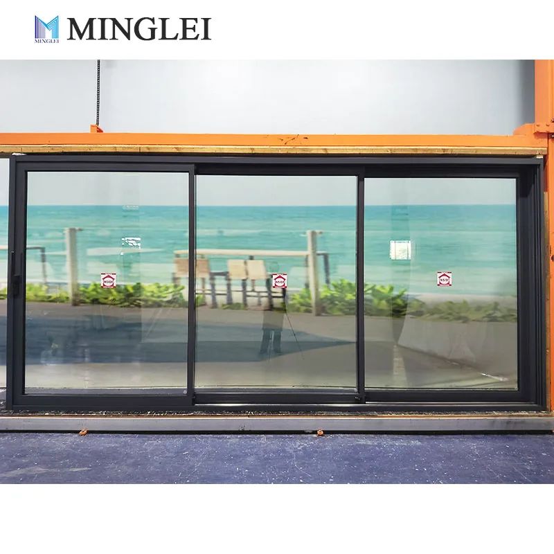 Doras Fáilte Slidéilíochta Tri-ghlacháin NFRC le Breisín Teas, Alúmanaim Tanaí, Doras Leathnaigh agus Slidéilíochta le Gloine Threiseáilte Tri-ghlacháin