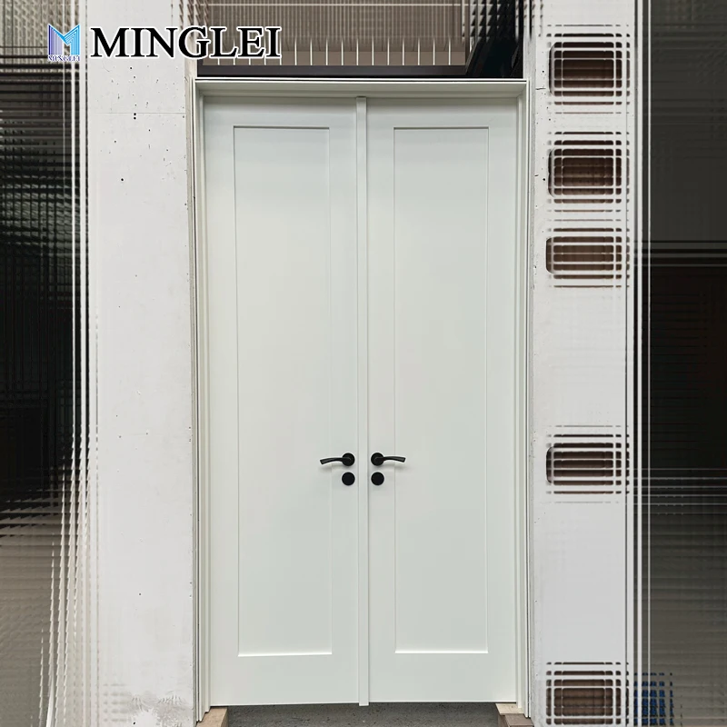 高級外観用玄関ドア:米国住宅向けにカスタマイズ可能な堅牢な木製両開き玄関ドア、防音機能付き木製ドア