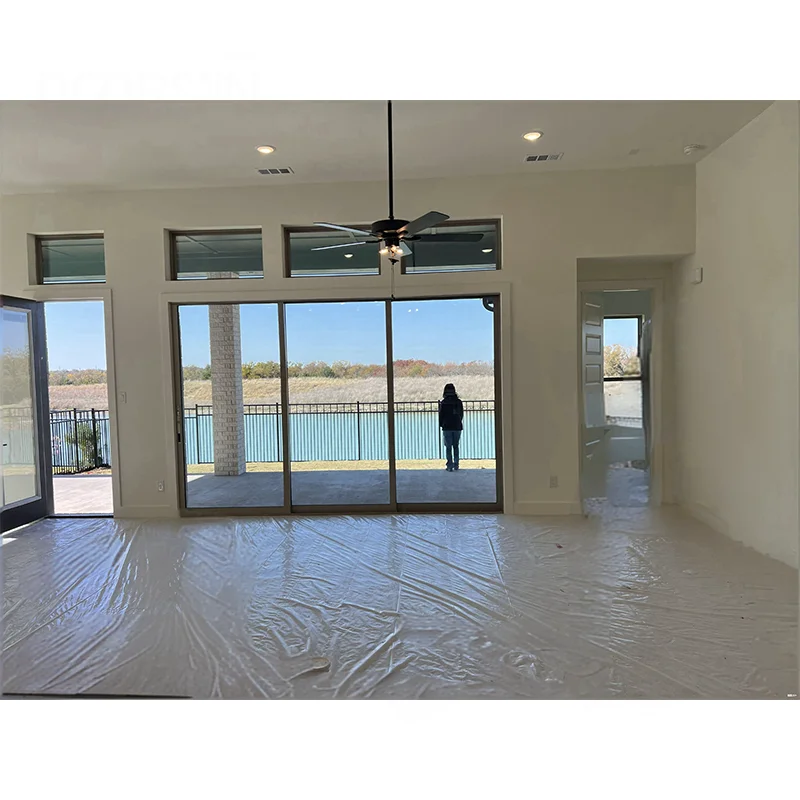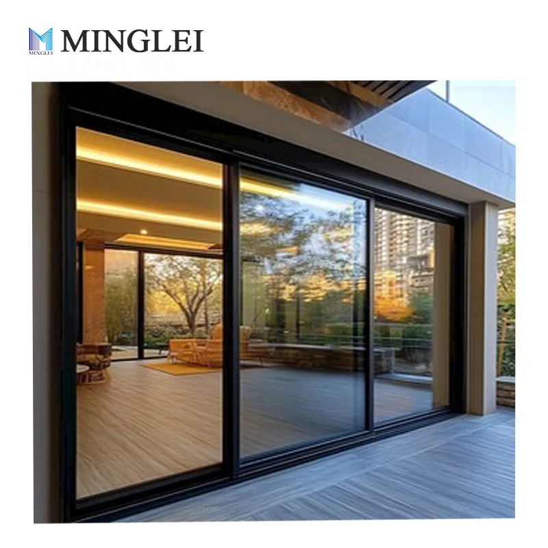 Trīs ceļu lifta slīdošā stikla durvis, mūsdienīgas alumīnija termpa durvis ar termoizolāciju, āra durvis villa