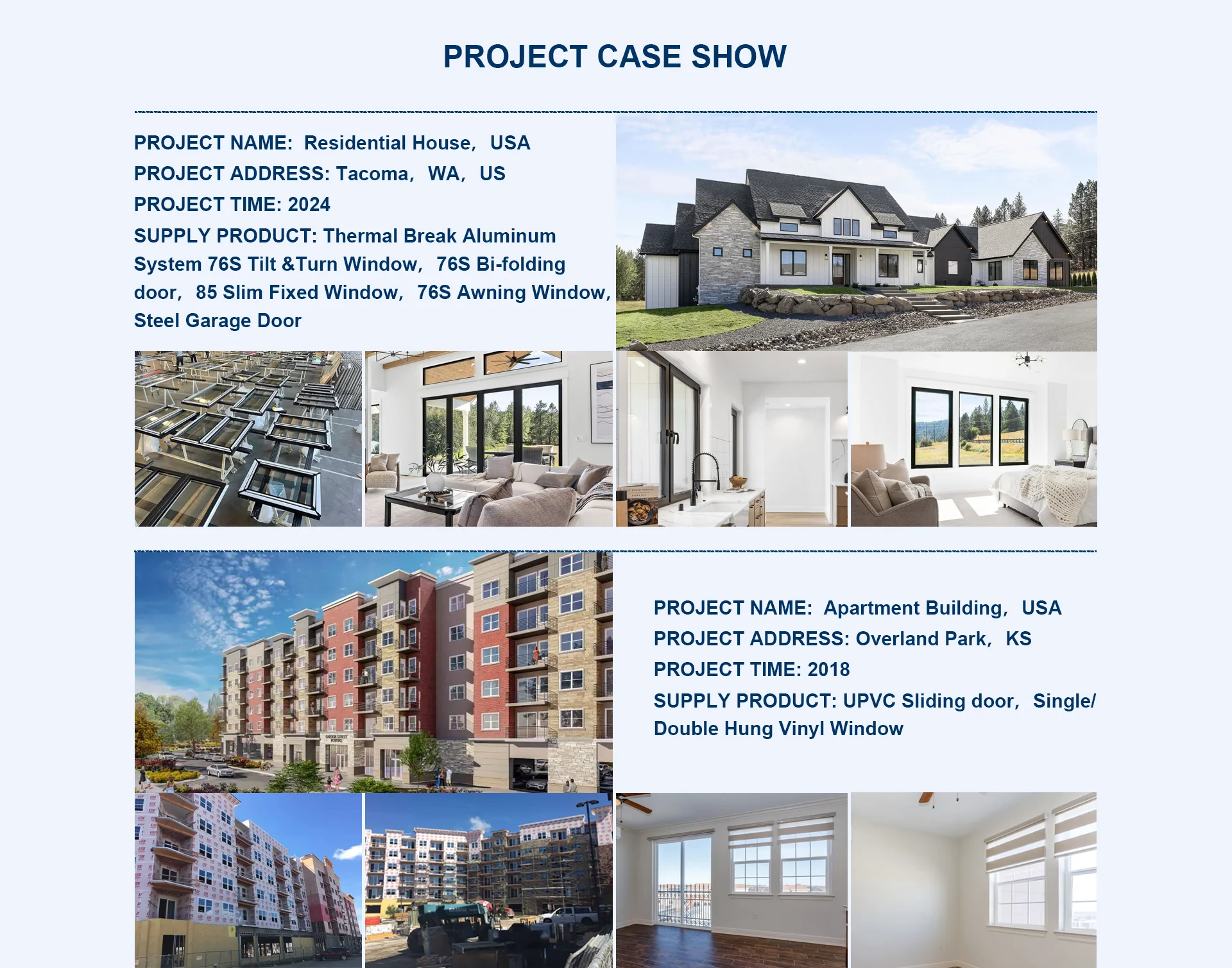 Minglei adalah pengilang profesional yang pakar dalam pengeluaran tingkap dan pintu berkualiti tinggi dengan lebih daripada 10 tahun pengalaman eksport serta dua tapak pengeluaran berteknologi tinggi dengan kapasiti pengeluaran 300,000㎡/tahun. Kami telah menerima banyak ulasan dan cadangan bintang lima daripada pelanggan global dari lebih 60 negara, 80% daripadanya dari Amerika Syarikat, Kanada, Eropah, dan Australia. |