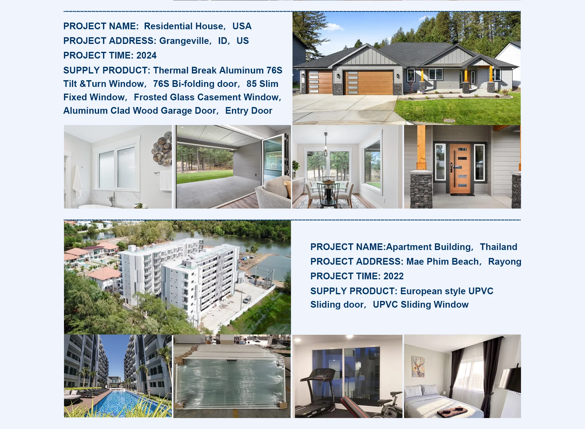 We are very happy and look forward to a long-term partnership with you, as with our other partners in US, where our service and strength in window and door expertise can help our partners save more time and money Minglei has been working for the North American market for a decade, we provided the most professional plan and meaningful design with ideal price to meet all our client’s highly customized demands. With our own expertise we provide no-cost design development & contract documentation with CAD & BIM drawings, including elevation & details & installation design. Helping clients to accurately control budgets by analyzing the overall plan, including to provide the schematic design to help determine products within cost parameters. Such as use lower cost products in inconspicuous locations to reduce the overall budget: If the direction is not under long time sunlight, do not use Low-E glass; use PVC windows or aluminum windows instead of solid wood windows in unimportant rooms such as toilets or storage rooms |
