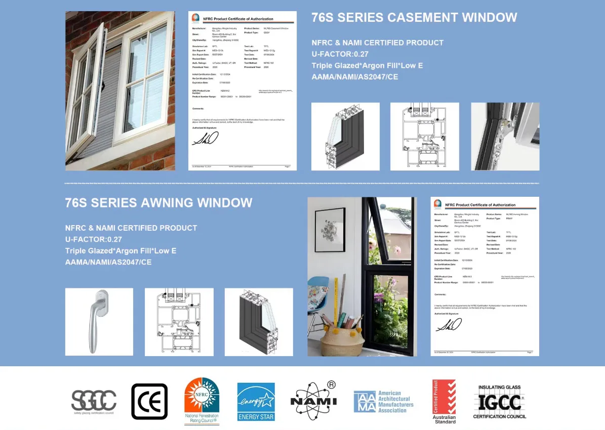 உயர்தர மூலப்பொருட்கள், நவீன தொழில்நுட்பம் மற்றும் சமீபத்திய உற்பத்தி செயல்முறைகள் மற்றும் திறமையான தொழிலாளர்களைப் பயன்படுத்தி சிறந்த நீண்ட ஆயுள், அசாதாரண செயல்திறன் மற்றும் ஒப்பற்ற அழகை வழங்கும் ஜன்னல்கள் மற்றும் கதவுகளை உருவாக்குகிறோம். எங்கள் ஜன்னல்கள் மற்றும் கதவுகள் தனிப்பயன் அளவுகள், கட்டிடக்கலை வடிவங்கள், நிறங்கள் மற்றும் சிறப்பு முடிக்கும் செயல்முறைகளுக்காக நெகிழ்வான உற்பத்தியுடன் உள்ளன. ஜன்னல்கள் மற்றும் கதவுகள் கனடா எனர்ஜி ஸ்டார், ஐக்கிய அமெரிக்கா NFRC & NAMI ஆல் சான்றளிக்கப்பட்டவை, இவை உங்கள் உள்ளூர் ஆய்வாளர்களின் சரிபார்ப்பைக் கடந்து, கனடா & ஐக்கிய அமெரிக்கா கட்டிடக் குறியீடுகளின் கீழ் உருவாக்கப்பட்டுள்ளன, எனவே அவை ஆற்றல் செயல்திறன் மிக்கவை, பாதுகாப்பானவை மற்றும் உறுதியானவை என்பதில் நீங்கள் நிம்மதி அடையலாம். |