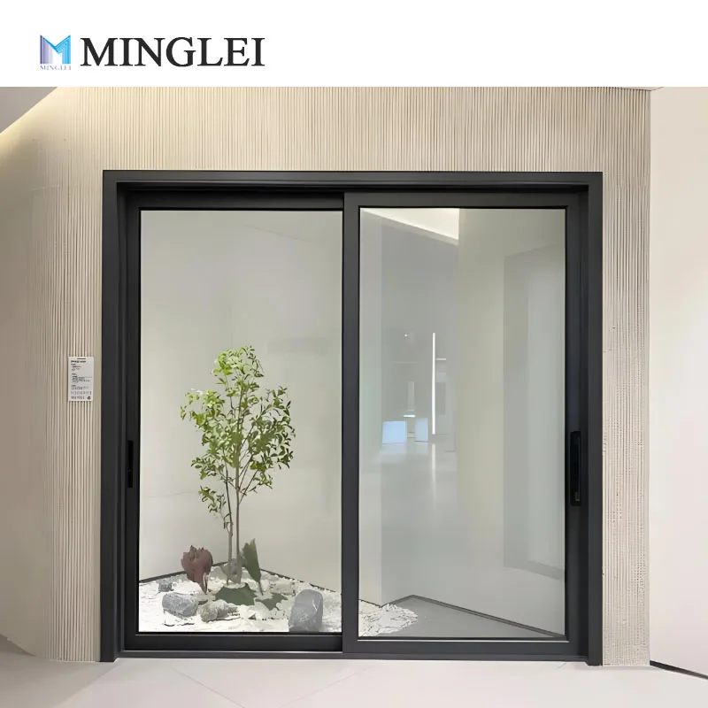 منگلی این ایف آر سی جدید پتلی فریم والے سیاہ رنگ کے الومینیم کے دوہرے شیشے والے ج tempered شیشے کے صحن کے سلائیڈنگ دروازے، توانائی کے لحاظ سے موثر صحن کے دروازے